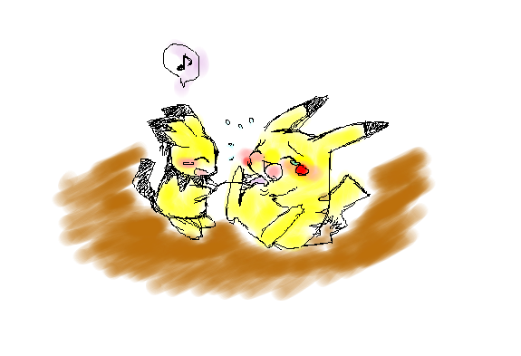 ピカチュウとピチューのあとに描いたもの これを描いてるときにいけない気持ちになったのはなぜだろうか(汗